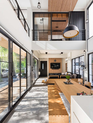 From the environmental simulations and analyses, the site would receive abundant wind from the lake-facing street but not much shading from neighboring houses. Therefore, the main living area, to be mostly naturally ventilated during daytime, is oriented north-south with offset distance from the lake to allow for wind flow. This mass is flanked with two wings on both ends to provide shading from the east and west. The east and west-facing masses contain spaces which are not regularly used or are used mainly at night. Functional uses are located based on orientation and overshadowing pattern to reduce incident solar radiation. The house form is punched to allow for wind to entry and exit. Extra porous shading layer is added to the east and west-facing skin for better solar control.